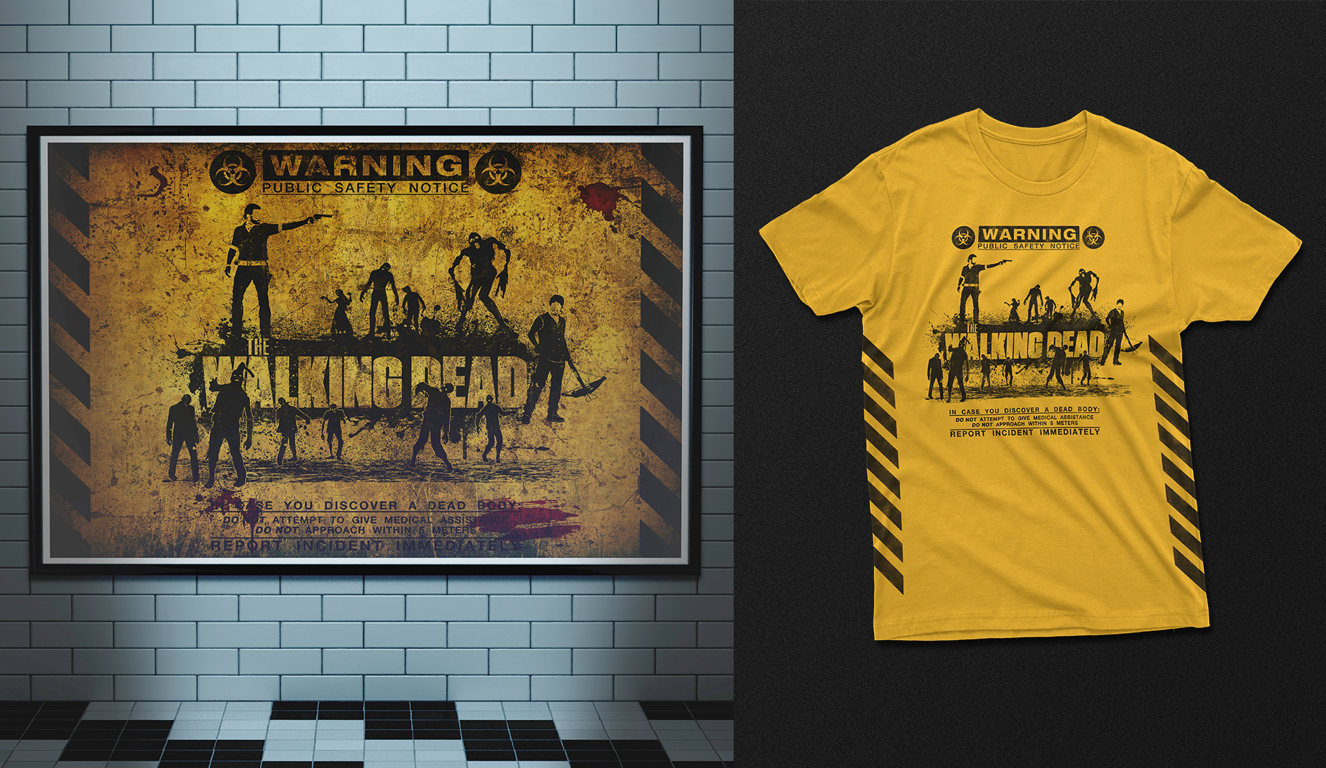 This vector tribute to "The Walking Dead" merges sharp design with gritty, apocalyptic textures. Initially crafted in Illustrator, the artwork was brought to life in Photoshop through added layers of worn textures and splattered blood, capturing the chaotic and raw essence of the series. The composition reflects the tension of a zombie outbreak, balancing order with the chaos of survival. Finalized in CMYK for a 100x70 cm print, this piece embodies the show's iconic distress. Created in 2012.