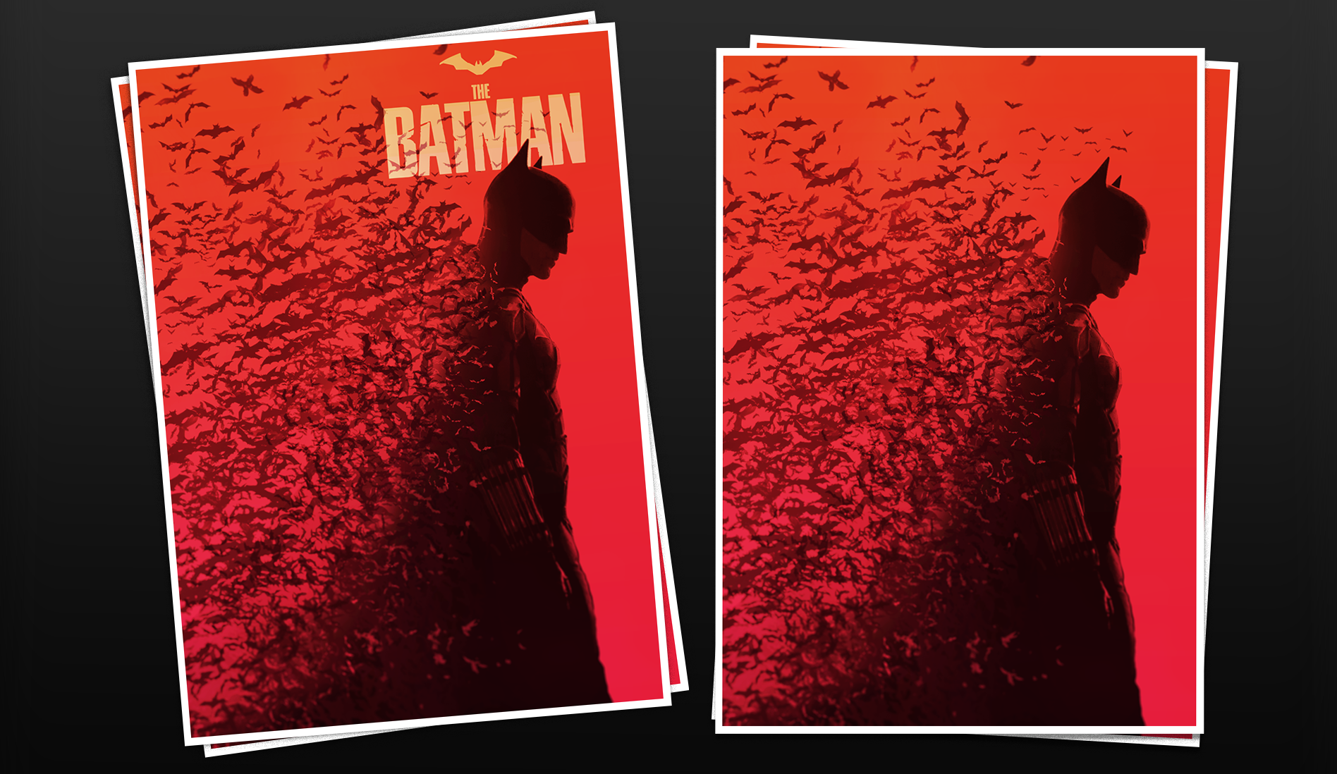 This artwork captures the essence of Batman's mysterious character, crafted in Photoshop. Started with an upscaled silhouette from the movie and created an atmospheric scene using brushes of bats scattering from the shadowed figure. Color and layer adjustments brought depth to this piece. Output prepared in CMYK and sized for a 70x100(cm) poster printing. A retouched 'AI' living room mockup, sets the artwork in a realistic context. Created in 2022 with a focus on bold contrast and visual storytelling.