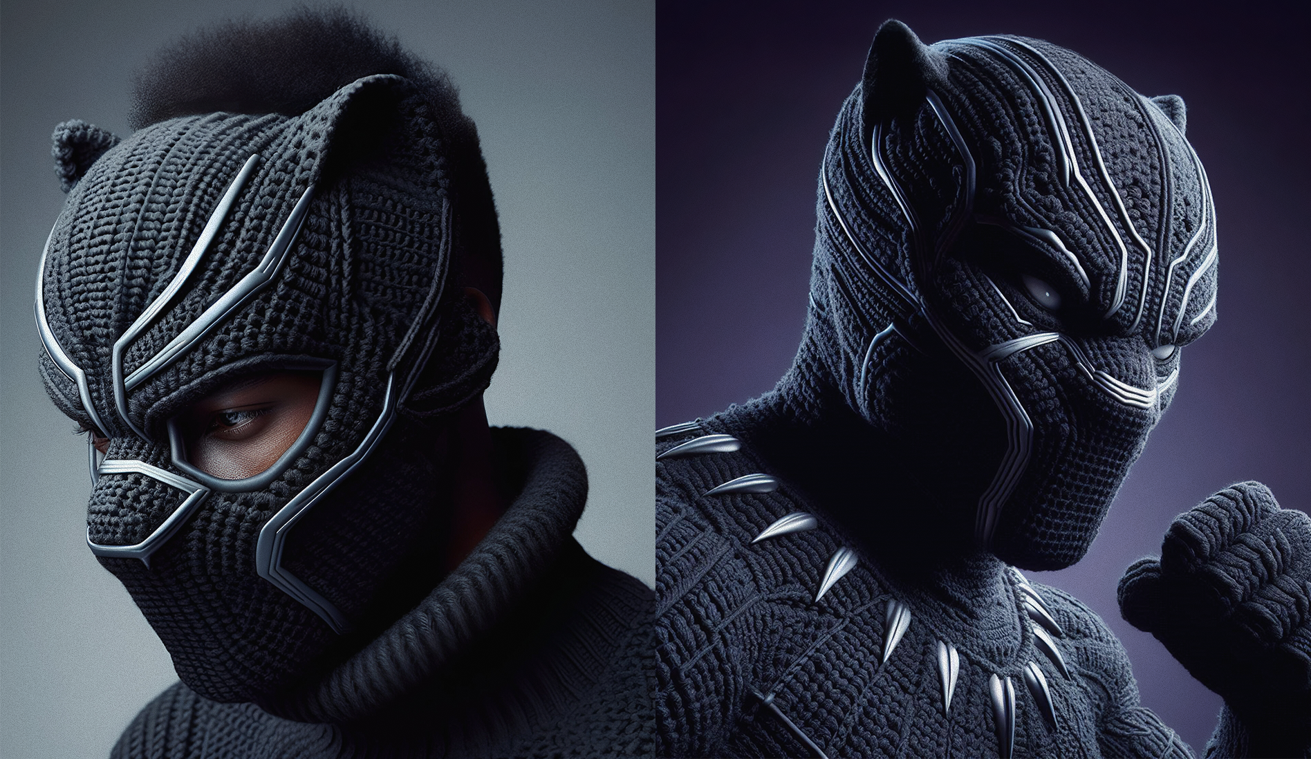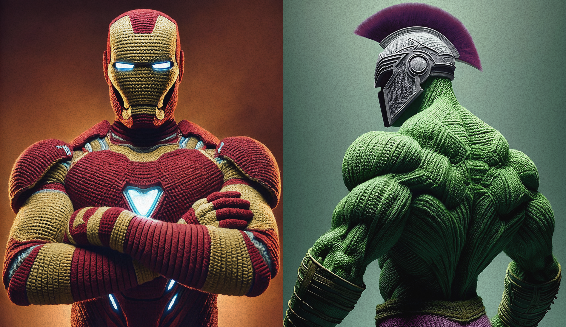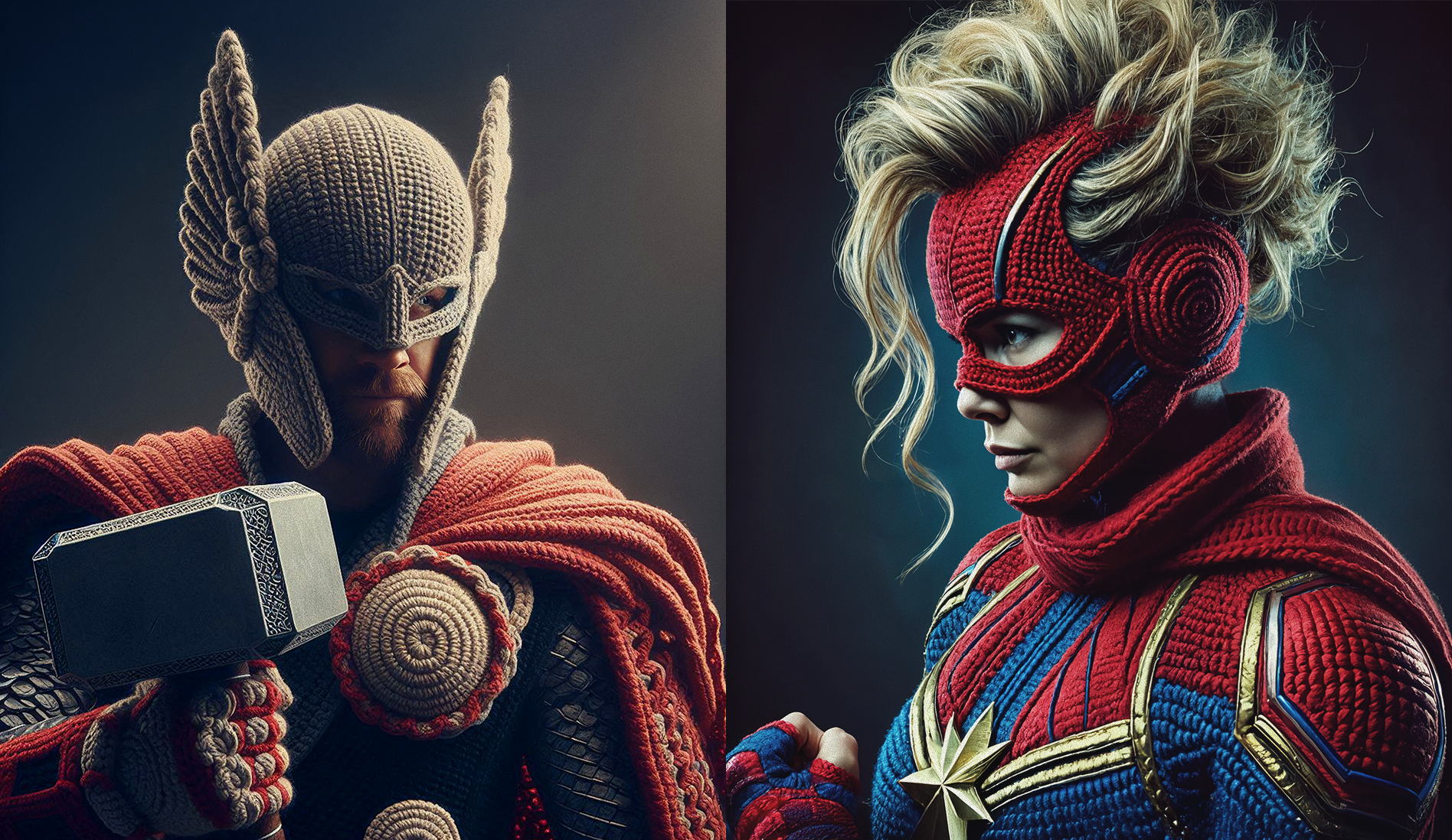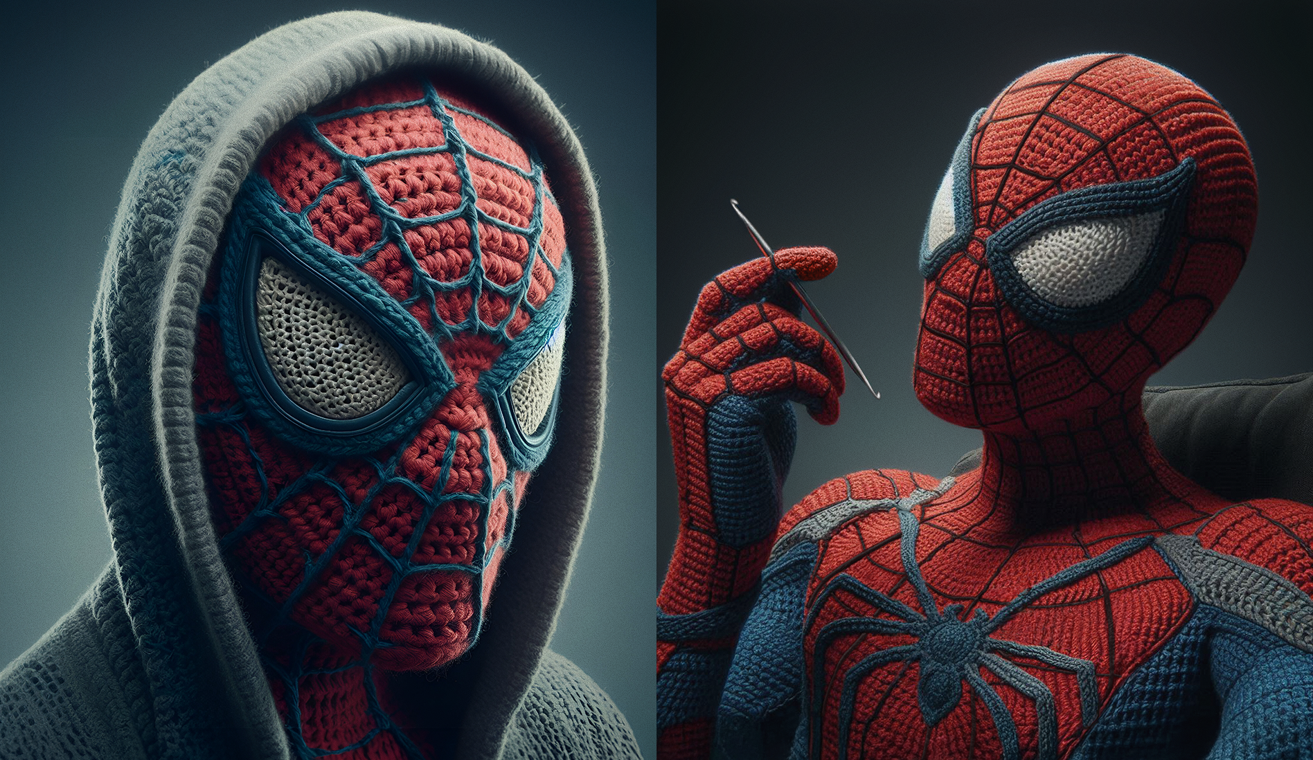 Reimagining Marvel superheroes with crochet costumes by blending digital art and AI-generated visuals. DALLĀ·E was used for the initial images wich were further refined in Photoshop to address imperfections, enhance fabric details, and ensure character accuracy. Each piece balances realism and creativity, capturing the unique charm of handcrafted crochet elements while staying true to the essence of the heroes. The images showcase a seamless fusion of AI and digital precision, offering a tweaked perspective on these iconic characters.