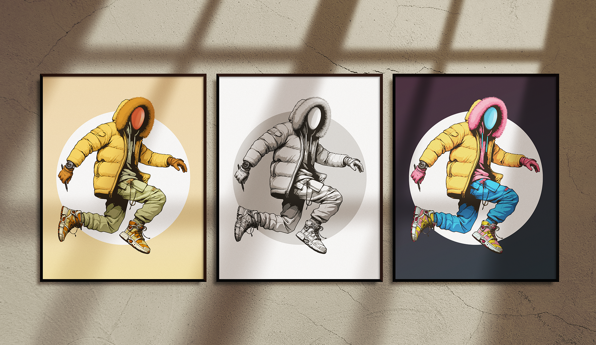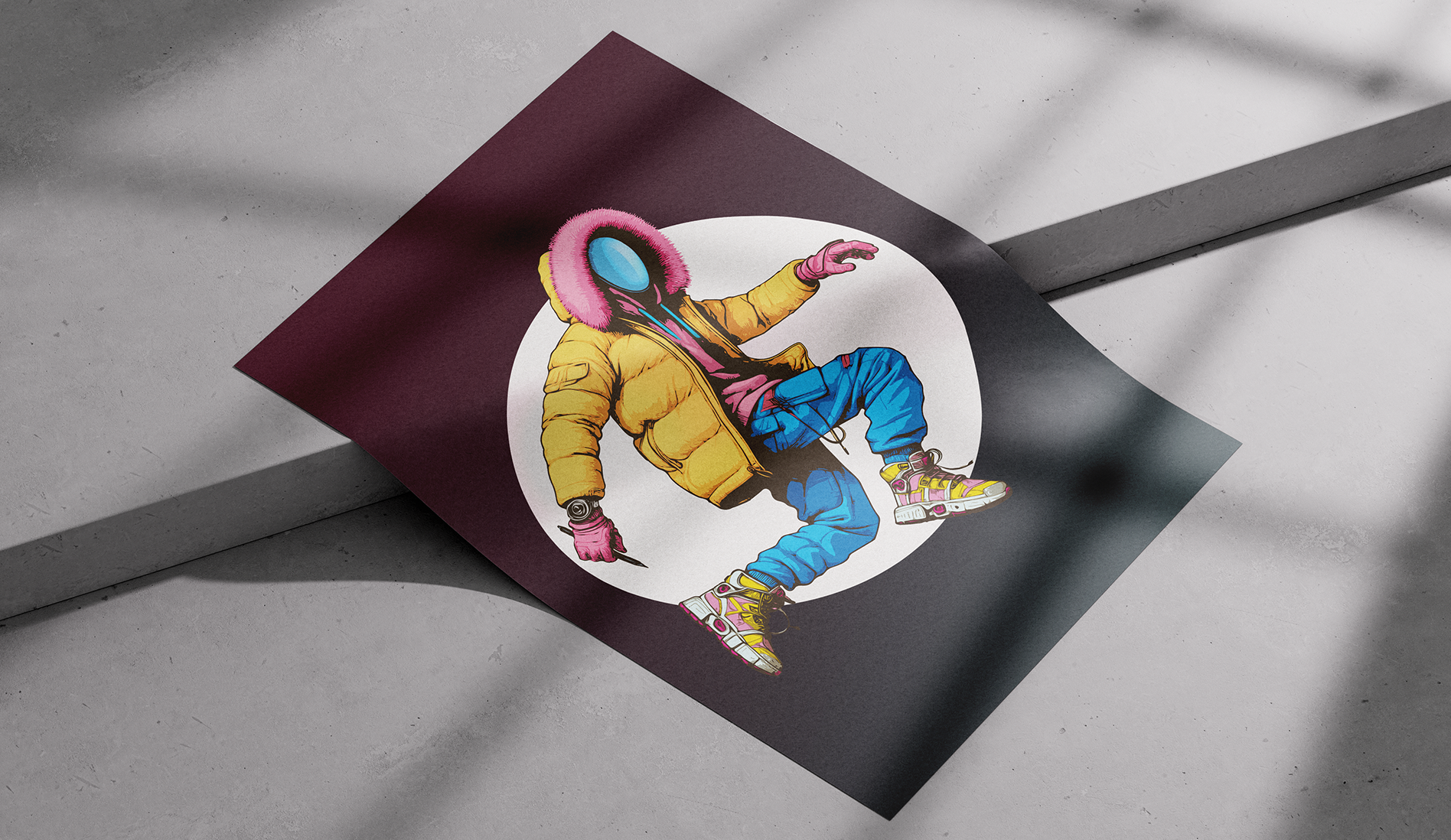 This illustration marks the beginning of "LOW2," a sci-fi graphic novel project and an integral part of my personal branding as a mascot. Created entirely in Illustrator, the artwork depicts an original character, blending streetwear aesthetics with a futuristic edge. Designed in three color variations, and a print size of 70x100(cm). Displayed in different moods, as reflected in the customized 'AI' mockups made to blend with each tone style. Created in 2023, this design is set to lead an upcoming merchandise collection.