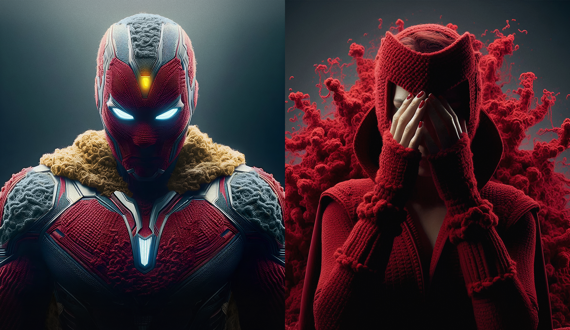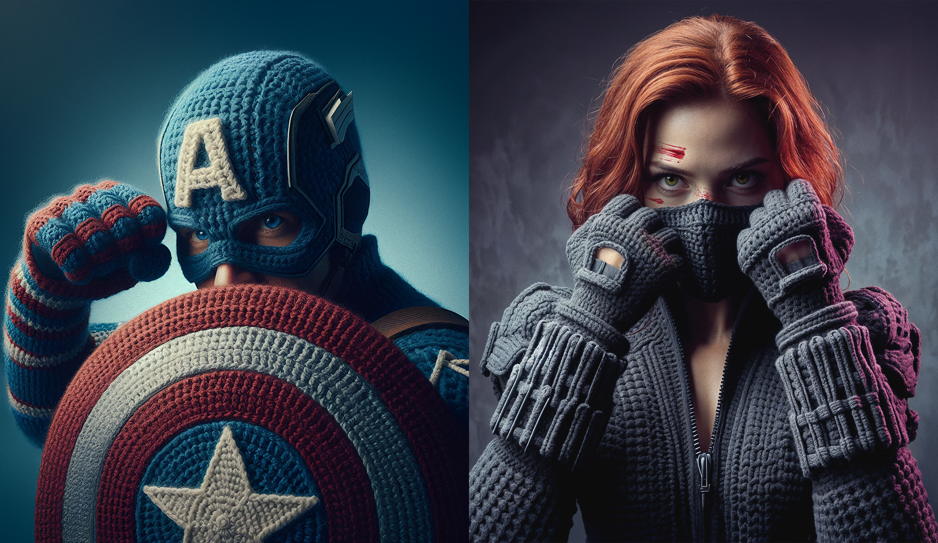 Reimagining Marvel superheroes with crochet costumes by blending digital art and AI-generated visuals. DALLĀ·E was used for the initial images wich were further refined in Photoshop to address imperfections, enhance fabric details, and ensure character accuracy. Each piece balances realism and creativity, capturing the unique charm of handcrafted crochet elements while staying true to the essence of the heroes. The images showcase a seamless fusion of AI and digital precision, offering a tweaked perspective on these iconic characters.